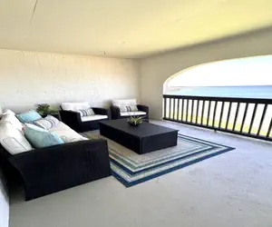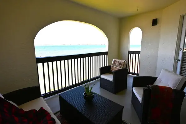 The fully equipped kitchen is ready for anything, whether you're preparing beachside snacks or a full family dinner. The serene bedroom features a king-size bed, a TV, and tranquil views of the water. Additional sleeping accommodations include a queen-size sofa bed and a single loveseat/chair bed in the living area—ideal for kids or extra guests. A shared full bathroom with a tub/shower combo and a convenient in-unit washer and dryer ensure a comfortable, carefree stay.