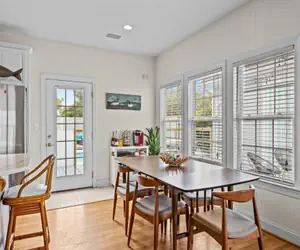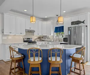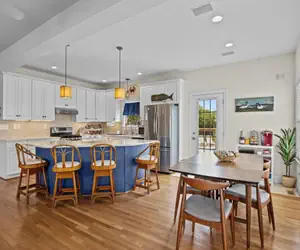 Harkers Haven is island-living at its best, with beach vibes and incredible space! The open layout is ideal for vacationers as it brings family and friends together in one large and sunlit home. The kitchen might be the obvious hangout where cooking meals, drinking coffee or planning the day's events can all be done at the countertop bar. The other option might be the living room, where you will find generous seating, a huge TV and a fireplace (for decoration only), for those in your group who need extra comfort as well as cozy homey vibes!