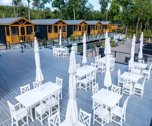 This two-bedroom cabin is a short walk to the pond side floating boardwalk.