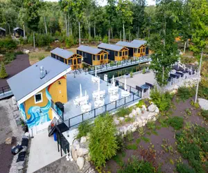 This one-bedroom cabin has a direct walk out onto the pond side floating boardwalk.