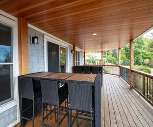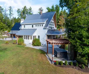 The estate house is an ideal spot for a large family to stay. With a modern farmhouse vibe, there is plenty of space for everyone to enjoy. The house has 4 plus bedrooms, 3 baths and two convertible couches to sleep 12 and includes an outdoor shower and hot tub. The wraparound porch and master balcony are great spaces for morning coffee and views of the lake. Guests will also have access to the natural pond. You can also enjoy Sebago Lake with at Nason's Beach which is a very short drive away. DOG CONSIDERED WITH $125 FEE
