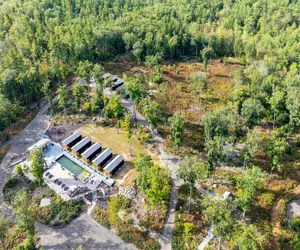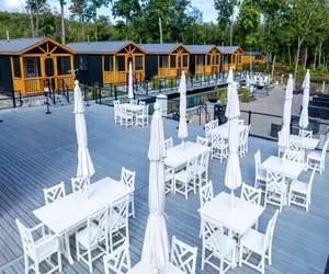 OCCUPANCY LIMIT 4. The cabin includes a private bedroom and bath, plus a common room with kitchenette. This two-bedroom cabin is a short walk to the pond side floating boardwalk.
