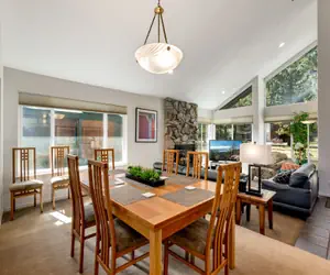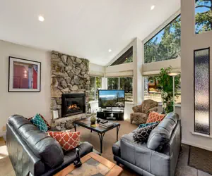 Spacious Riverfront is in Christmas Valley, located on the south shore of Lake Tahoe. This spacious home is approximately 10 miles from the casinos, a 15-minute drive from Heavenly, 20 minutes from Sierra-at-Tahoe, and Kirkwood is a short 30-minute drive. This charming home is nestled back in the forest, where you can enjoy the sounds of the river in a very quiet neighborhood. It is a one-level home with 3 bedrooms and a double garage with an EV charger. Spacious Riverfront is approximately 2,300 square feet.