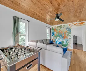 Inside, kick back in the inviting living area or challenge your crew to a match at the foosball table. With a washer and dryer on-site, longer stays are easy and convenient.