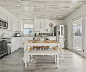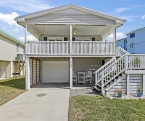 This free-standing beach home is brand new to vacationers as of the SUMMER OF 2025, Shell Shack owners have thought of everything! Downstairs there is a private hot-cold shower to wash the days sand away and a high-top table with 3 high back chairs. Enjoy the large back yard for grilling out and a game of cornhole! In the outdoor storage, find beach chairs, beach toys and more!