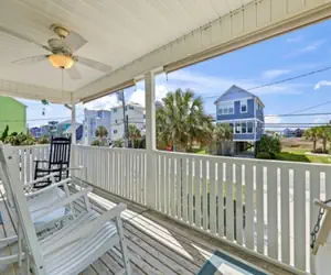 Experience the comfort of home away from home in our spacious property with 3 large bedrooms. Gated front porch boasts a porch swing and 3 rocking chairs with marsh views and sounds of the ocean hitting the rocks.