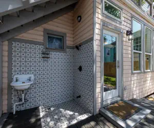 The home’s outdoor spaces are equally impressive, with upper and lower decks in the backyard providing ample seating for everyone to relax and enjoy the fresh air; you can even see the ocean from the upper deck. The large live oak tree—standing proud for over 100 years—creates a peaceful, shaded atmosphere perfect for unwinding. Grill up your favorite meals and enjoy alfresco dining, or rinse off in the outdoor shower after a day at the beach.