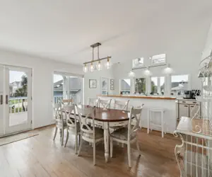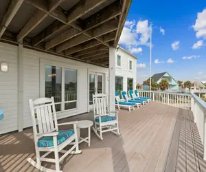 The primary suite on the main level boasts a king bed, twin bed, large walk-in closet, and ensuite bathroom with double vanities and a large walk-in shower. Two more bedrooms are on the upper level - one queen bedroom and a third, loft-like bedroom with a king bed, 2 twin beds and a roll-out twin trundle. All of the bedrooms feature deck access to start and end your days enjoying the beach breezes!
