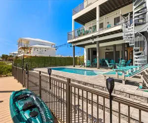 The outdoor space is a paradise for water lovers and adventure seekers. The private dock allows you to bring your boat or launch the kayak or paddleboard provided. Relax by the heated pool overlooking the canal, or enjoy the expansive decks with plenty of seating, dining areas, and unbeatable waterfront views. For beachgoers, beach chairs, an umbrella, and bikes are also available for guest use.