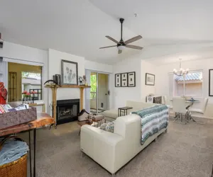 2 bedrooms, 2 bathrooms on 2nd level, nicely furnished, balcony. Real wood fireplace. Centrally located close to Loop 101, Scottsdale/Shea hospital, MAYO Hospital, Scottsdale Greenbelt with walking/biking trails, restaurants, golf and hiking. Steps to pool and Hot Tub. Multiple other pools and TENNIS/PICKLEBALL (5 Tennis / 4 Pickleball) courts in the complex. 2 Pickleball paddles and balls included. BBQ's at pool area. Walking/running/biking paths start in neighborhood and connect to the Scottsdale Greenbelt.