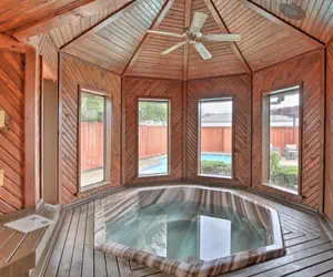 Relax in this beautiful large 5 bedroom and 3 bathroom luxury home that sleeps 12 in Richardson, TX. Enjoy swimming in the pool during the day and the indoor hot tub at night. The home is great for entertaining family and friends with a fireplace, open kitchen, wet bar, beautiful master bedroom suite, and plenty of sleeping space.