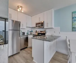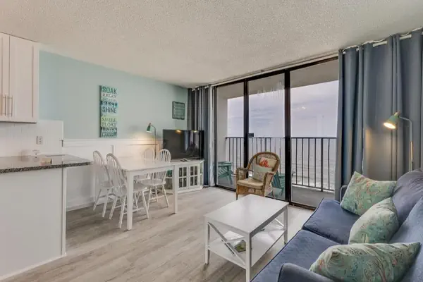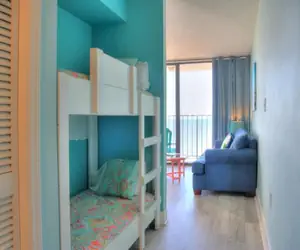 Welcome to your elevated beachfront escape on the 11th floor, where stunning ocean views meet comfort and convenience. This 1‑bedroom, 1‑bathroom condo is thoughtfully designed to sleep up to six guests without sacrificing style or space. The master bedroom features a luxurious king‑size bed, offering a restful sanctuary above the shoreline. Just off the hallway, you’ll find a built‑in bunk‑bed alcove—perfect for kids or extra guests who want their own cozy corner. The living room’s sleeper sofa adds two more sleeping spots, so you have flexible space for everyone in your group.