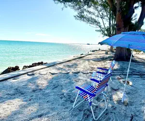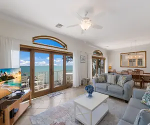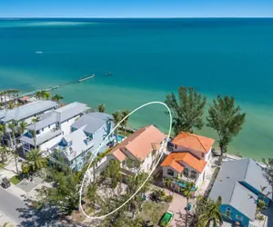 Welcome to Dolphin Watch!Welcome to your beachfront paradise! This Mediterranean home on the North end offers breathtaking views and a private bay beach just steps away from Bean Point. This elevated beauty features balconies with panoramic water views from living room and dining area. Walk up to the side entrance of the house and ascend a few more steps to the main level with a spacious open floor plan. The living room boasts a full wall of sliding doors leading to a balcony terrace overlooking the Bay and spectacular views of the Sunshine Skyway Bridge displaying a nightly light show. Egmont Key with its lighthouse is also in the distance. Enjoy your morning coffee watching the sun rise over the Bay, catch a glimpse of dolphins cruising by and get to know all the different seabirds! You will be amazed by all the different shades of blues and greens of the water! Dine al fresco or prepare a romantic candlelit dinner in the formal dining area. A spiral staircase leads to the covered area where you will find the grill. The kitchen, equipped with a cooktop, oven and new refrigerator, offers ample counter space and a dining table for six. French doors open to the front patio, a perfect space to relax or connect with your friends at home. All bedrooms are on this level. The primary suite features a queen-size bed and ensuite bathroom.There is a king bedroom with a workspace. The other guest bedroom offers two twin beds and bunk beds. A full bath with a tub/shower combo is shared across the hallway.Washer and dryer are conveniently located in the hall closet.The house comes with your private beach. Hang out on the loungers under the covered area over-looking the bay or take an early morning swim right at your back door. HIGHLIGHTS • 2122 sq ft. • Private Bay Beach• Pet friendly • Washer/dryer in unit• Outdoor Shower BEDROOMS• Sleeps 8• Primary Bedroom: Queen Ensuite• Second Bedroom: King• Third Bedroom: 2 x twins and bunk bedBATHROOMS• Ensuite Bathroom: Walk-in Shower• Second Bathroom: Shower/Tub ComboEXTERIOR:There is an open patio area and your private bay beach. Enjoy an early morning swim and witness the sun rising over the bay. Ample seating and loungers are provided to soak up the Florida sun. Hop under the outdoor shower to rinse off the sand and salt! The driveway offers at least three parking spaces for your convenience.Your perfect island retreat awaits – stunning sunrises and all the right beach feels! The house is also just a short walk away from boutique shopping and eateries along historic Pine Avenue. Dolphin Watch is a pet friendly property for dogs up to 50 lbs. The non-refundable pet fee is $150.00 per pet per stay. The pet fee does not cover any damage caused by the pet. Please keep in mind that you are vacationing in a residential area. Please be a good neighbor by keeping the noise to a respectful level during the day and night. Excessive and unreasonable noise can deprive neighbors of the peaceful enjoyment of their private property. VR16-000325