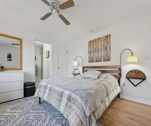 Enjoy modern amenities, including free in-unit internet, a Jacuzzi tub for ultimate relaxation, and a portable air conditioner in the master bedroom for added comfort.