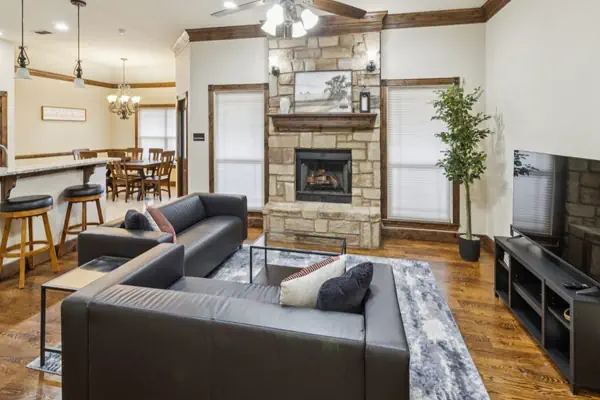 This spacious 3-bedroom, 2-bath home offers comfort and style with vaulted ceilings and engineered hardwood floors throughout the main living area. Cozy up by the wood-burning fireplace or whip up a delicious meal in the gourmet kitchen, fully equipped with stainless steel appliances, granite countertops, a prep island, alder wood cabinets, and a separate pantry for all your storage needs.Your primary bedroom is a true sanctuary featuring vaulted ceilings, a luxurious en suite bathroom with dual sinks, a garden tub, a large separate shower, and a walk-in closet. Step outside to the covered back porch — perfect for relaxing with a ceiling fan overhead and a TV ready for your entertainment while you enjoy a barbecue.Additional perks include a new roof, new dishwasher, and new faucets for peace of mind during your stay. Plus, a handy storage building with a loft offers extra space for your gear or hobbies.Perfect for families, groups, or anyone looking for a stylish and comfortable home base. Book your stay today and experience all that Abilene has to offer!★☆ NEARBY ATTRACTIONS, LANDMARKS & RESTAURANTS☆★ Lake Kirby Park and Nature Play Area - 5 min drive PrimeTime Family Entertainment Center - 5 min drive Kirby Lake - 7 min drive Abilene Zoo - 9 min drive Abilene Regional Airport - 9 min drive Frontier Texas! - 10 min drive Redbud Park - 10 min drive Adamson - Spalding Storybook Garden - 11 min drive Jacob's Dream Sculpture - 13 min drive Swenson House - 15 min drive Historic Fort Phantom Hill - 22 min drive★☆ KEY FEATURES ☆★ Vaulted ceilings & engineered hardwood floors Wood-burning fireplace in living area Gourmet kitchen with stainless steel appliances & granite countertops Primary suite with garden tub, separate shower & walk-in closet Covered back porch with ceiling fan & included TV Keurig coffee maker New roof, dishwasher, and faucets Storage building with loft★☆ BEDROOM ARRANGEMENT☆★BR1: 1 Queen BedBR2: 1 Twin over Queen BunkbedBR3: 1 Twin over Queen BunkbedExtra room: Game Room