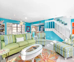 Sunset Captiva 19 is a beloved two-story home that exudes tropical charm and provides a comfortable, laid-back atmosphere for your vacation. Ideal for families or small groups, this well-equipped home offers ample space to relax and unwind. The spacious living area boasts an open floor plan, creating a seamless flow between the kitchen, dining, and living spaces. The cozy living room includes a large flat-panel TV, DVD player, and Wi-Fi, perfect for relaxing after a day of exploring. A sleeper sofa provides additional sleeping space for guests.