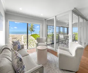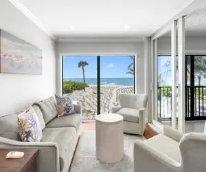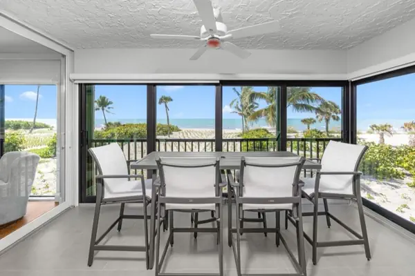Stunning direct Gulf of Mexico views give you the perfect ambiance to relax into the evenings here at Kings Crown 117. This two bedroom two bath condo situated on West Gulf Drive offers the perfect location to comb the pristine Sanibel beaches or to relax and lay back by the pool on the beach. The open kitchen and multi-use living room / dining area are facing the beach for beautiful views during your time inside the unit. The master bedroom had a comfortable king bed ensuite, a smart tv for your streaming needs and a walk in custom closet. The guest bedroom is situated with two twins and a trundle, a smart tv and a small custom closet to place your belongings. Kings Crown provides a tropical beachfront paradise on the Gulf of Mexico, famous for white sand beaches, incredible shelling and amazing sunsets. A mid-size complex, 54 units with under building parking, pool, tennis, pickleball, picnic area and on-site manager.