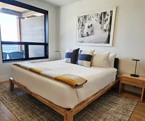 Five Needles 214 is a brand new, beautifully furnished 2-bedroom 2-bathroom unit. Located at the White Pines, Five Needles sets a new standard for luxury at Schweitzer. Guests enter the unit in the open living space with a kitchen and living room. The kitchen features high-end appliances and plenty of counter space to cook a gourmet meal in the fully stocked kitchen. Cozy up around the electric fireplace or catch up on your favorite shows on the large flat screen TV. Enjoy your meal and soak in the views of Lake Pend Oreille at the dining room table with seating for 4. Off this space is a private balcony, another perfect place to soak in the views, with magnificent views of Lake Pend Oreille. The master bedroom features a king-size bed and an ensuite bathroom with walk in shower. The second bedroom features bunk beds with queen beds. The second bathroom is located off the living space with a shower/tub combo and in unit washer and dryer.The Five Needle’s is an addition to the White Pine Lodge, bringing a new level of luxury to Schweitzer. Completed in the summer of 2023, these units feature high-end appliances and furnishings and amazing views. Available in studio and two-bedroom condominiums, these units offer one underground parking space, ski storage, and access to the common area amenities at the white pine included hot tubs and a fitness facility. Schweitzer Property Management is the largest and most trusted property management company at Schweitzer. All guests with Schweitzer Property Management have access to the outdoor hot tubs and heated pool at the Selkirk Lodge.