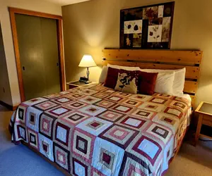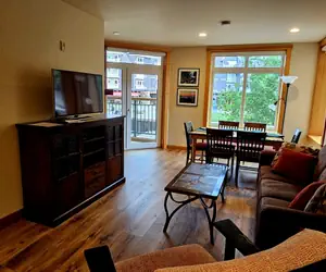 White Pine 206 is a fully furnished two-bedroom two-bathroom ski-in ski-out unit located on the second floor of the White Pine building. This unit has a fully stocked kitchen and a table with seating for 6 people. The living room has a queen-size sleeper sofa, a TV with a DVD player, and gas burning fireplace. The master bedroom features a king-size bed, TV, and an ensuite bathroom with a walk-in shower. This bedroom has access to the private balcony with views of Schweitzer Village and the mountain. The second bedroom has a captain's bunk (twin over queen). This balcony wraps around the unit and can also be accessed from the living room, providing views of the mountain and village. The unit has one assigned spot in a heated parking garage.The White Pine Lodge offers guests what they love, while being steps from the slopes! One, two, and three-bedroom units feature full kitchens, gas fireplaces, underground parking, ski storage, a fitness facility, and 3 outdoor hot tubs.Schweitzer Property Management is the largest and most trusted property management company at Schweitzer. All guests with Schweitzer Property Management have access to the outdoor hot tubs and heated pool at the Selkirk Lodge.