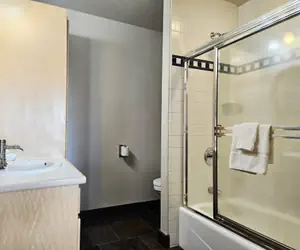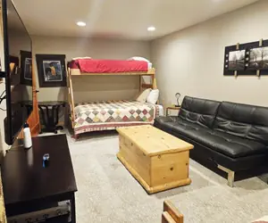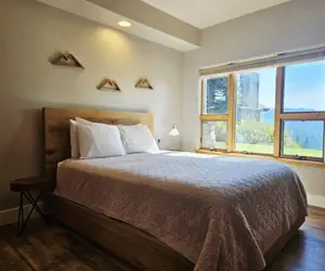 Glades 2B is a four bedroom four bathroom townhome. Guests enter the unit into the living room with large vaulted ceilings. Guests enter the unit into the living room with large vaulted ceilings. Next to this is a dining room with seating for 8 and a fully stocked kitchen. Up one level is the master bedroom with a king bed and an ensuite bathroom with a double vanity sink, large soaking tub, and walk-in shower. One level below, guests will find a bedroom with two captain's bunks (Twin over Queen) sleeping 6. Also on this level is a dry sauna. On the bottom level are two bedrooms, both with queen beds and two bathrooms. Also on this level is a back patio with a private hot tub. This unit has a heated one-car garage with an additional parking spot in front of the garage.The Glades is a luxury slope-side townhome community nestled below Schweitzer Village. These four-bedroom, multi-level townhomes feature a spacious layout, a fully equipped kitchen, ga as fireplace, a private balcony, a washer and dryer, a private hot tub, and a one-car garage. The community sits slope-side to the Creekside lift, making ski access a breeze! The amenities of Schweitzer Village are a quick 5-minute walk away.Schweitzer Property Management is the largest and most trusted property management company at Schweitzer. All guests with Schweitzer Property Management have access to the outdoor hot tubs and heated pool at the Selkirk Lodge.
