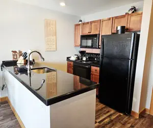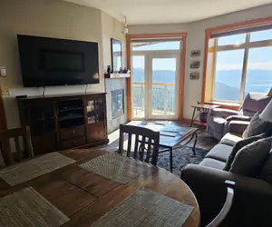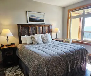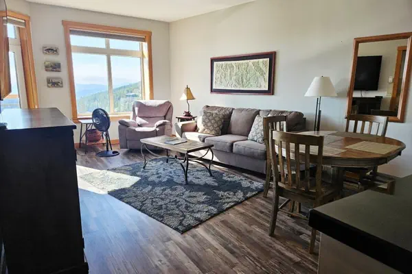 White Pine 509 is a beautifully furnished one-bedroom one-bathroom ski-in ski-out unit located on the top floor of the White Pine building. This unit is tastefully furnished with a fully stocked kitchen and a table with seating for 4 people. The living room features a queen-size sleeper sofa, TV with DVD player, and gas burning fireplace. The bedroom features a King size bed and additional TV. In the bathroom guests will find a single vanity sink and a shower/tub combo. Enjoy views of Lake Pend Oreille from the living room and private balcony. Unit has one assigned spot in a heated parking garage.The White Pine Lodge offers guests what they love, while being steps from the slopes! One, two, and three bedrooms units feature full kitchens, gas fireplaces, underground parking, ski storage, fitness facility, and 3 outdoor hot tubs.Schweitzer Property Management is the largest and most trusted property management company at Schweitzer. All guests with Schweitzer Property Management have access to the outdoor hot tubs and heated pool at the Selkirk Lodge.