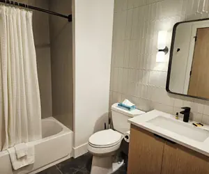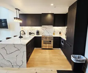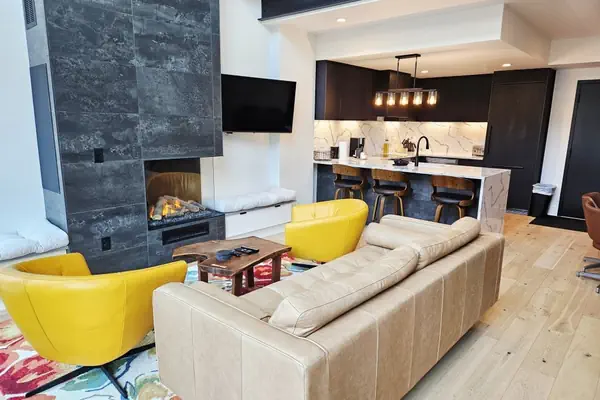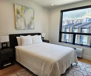 Five Needles 419 is the largest rental in Schweitzer Village, located directly above Pucci’s Pub and Gourmandie Wine & Sandwich Shop, a stone’s throw from Crow’s Bench Restaurant and a 2-minute walk to the lifts – park your car and never touch it again until you depart. This beautifully furnished condo offers 2-bedrooms plus a frosted glass-enclosed bedroom in the loft, along with 3 full-sized bathrooms. Located at the White Pines, Five Needles sets a new standard for luxury at Schweitzer. Guests enter the unit in the open living space with kitchen and living room. The high vaulted ceilings allow for plenty of natural light and unbelievable views of Schweitzer resort. The kitchen features high end appliances and plenty of counter space to cook a gourmet meal in the fully stocked kitchen. Enjoy the beauty of the electric fireplace or catch up on your favorite shows on the large flat screen TV. Enjoy your meal and soak in the views of Schweitzer Village and Mountain at the dining room table with seating for 6. There is additional bar seating at the kitchen for 3. Off this space is a private balcony, another perfect place to soak in the views. On this level is a bedroom with a queen bed. Right next door is a bathroom with a shower/tub combo. At the top of the main staircase, you will find the loft. This space features a queen-size bed, and while not technically a full third bedroom, there is an eight-foot-tall, frosted glass partition offering plenty of privacy. In this space there is also a bathroom with walk in shower. Adjacent is the second bedroom, a 400+ sq. ft. space that features two captains’ bunks (twin over queen) sleeping a total of 6, a game area and a foosball table – the ultimate fun space for kids. There is an ensuite bathroom with a walk-in shower. The Five Needle’s is an addition to the White Pine Lodge, bringing a new level of luxury to Schweitzer. Completed in the summer of 2023, these units feature high end appliances and furnishings and amazing views. Available in studio, and two-bedroom condominiums, these units offer one underground parking space, ski storage, and access to the common area amenities at the white pine included hot tubs and a fitness facility.