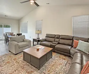 Outside, the fenced xeriscape backyard offers a peaceful post, perfect for sipping morning coffee or an evening glass of wine under the stars. The attached garage provides added convenience and secure parking throughout your stay.