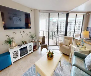 Welcome to your getaway at Surfside Resort 708! This condo features 2 bedrooms and 2 bathrooms, with sleep accommodations for up to 8guests. There is a king bed in the master bedroom. The guest bedroom has 1 double bed and 1 Twin Bunkbeds. Finally there is a queen sleeper sofa in the living room. Watch amazing sunrises and sunsets from the furnished balcony while sipping your morning coffee or enjoying an evening cocktail. Prepare anything from your morning coffee to a full-course dinner in the well-equipped kitchen. There is a desk area set up as well if you have to work during your stay! There is a washer and dryer in the unit for your convenience. Grab a bite or a drink at the Tiki Hut near the pool or follow the sky bridge that connects you directly from the pool area to the beautiful sugar-white sand beach! Come see why the fun never stops at Surfside Resort #708!