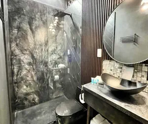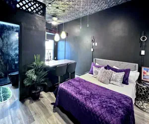 Inside, the unit sleeps up to 3 with a queen bed and a fold-out twin chair, perfect for a couple or small group. The recently updated bathroom and bold, modern decor make this studio stand out from typical beach rentals. Enjoy extras like a 55" smart TV, triple-sheeted bedding, and a Keurig for your morning coffee. The microwave doubles as a convection oven and air fryer, and there's a full-size fridge and small dishwasher for convenience.