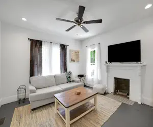 While the home has been thoughtfully modernized, much of its classic character remains—from charming original details to cozy, welcoming spaces. It features two comfortable bedrooms plus a dedicated bunk room, perfect for families, groups, or campus visitors.