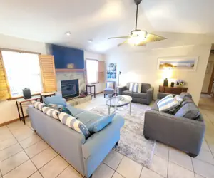 The living room is situated with comfortable sofas, a 65” HDTV over fireplace and is nicely decorated. Our home is equipped with WIFI so bring all the electronic devices to stay in touch with family and friends while you have the best vacation ever.