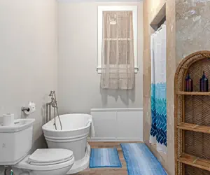 Comfortable coastal decor and clean, bright living spaces