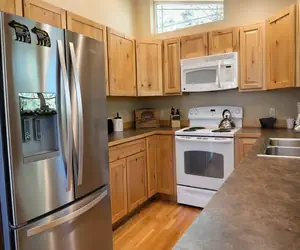 Escape to the serene River Song Cabin, a perfect riverside haven where the soothing sounds of the river create a tranquil atmosphere. This charming, pet-friendly cabin offers a cozy fireplace, fully equipped kitchen, and a spacious patio for outdoor living. Enjoy the convenience of free parking, wireless internet, and easy access to a plethora of activities from snowmobiling and hiking to fly fishing and wine tours. Whether you're seeking adventure or relaxation, this cabin promises an unforgettable stay.