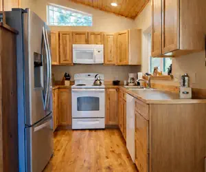 River Song Cabin (STR 000528) is a cozy 3-bedroom, 1-bathroom home perched on a 1.5-acre lot above the Wenatchee River. With 1,215 square feet of vaulted ceilings, knotty pine accents, and wood floors, this quiet hideaway feels spacious, bright, and welcoming. The home is ideal for families or small groups seeking comfort, convenience, and natural beauty—just minutes from Leavenworth and Plain.