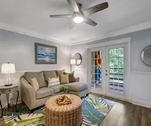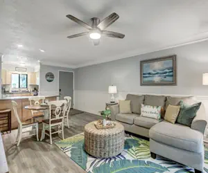 This beautiful 2-bedroom 2-bath condo has everything you need for your vacation. Fully furnished including your beach towels. The Master Bedroom has a queen bed featuring a smart TV with an ensuite bathroom. You also have a private entrance to the screened patio balcony. The second bedroom features a bunk bed with a full on the bottom and a twin on top. The guest bedroom is also equipped with a smart TV. The second bathroom is located right outside of this room. Open floor plan for your living room and dining room. The best part of the condo is a fully screened enclosure balcony. This is perfect for your sunset and sunrises or just grab a book and relax!