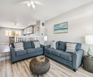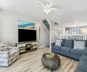 But the third floor? That's the showstopper. Picture this: a sprawling open-plan bedroom with three queen beds and the kind of ocean view that makes you forget to check your phone. With smart TVs in every bedroom and space for up to eight people, this townhome strikes that perfect balance between togetherness and personal space.