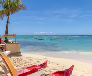 Surrounded by lush greenery and swaying palm trees, Outrigger Canoe Club Beach provides an idyllic setting for sunbathing, swimming, and leisurely shoreline strolls. Water enthusiasts are drawn to the beach's offerings, including opportunities for snorkeling and various water activities.