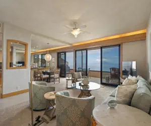 •Open-concept living, dining, and kitchen area with spectacular ocean views