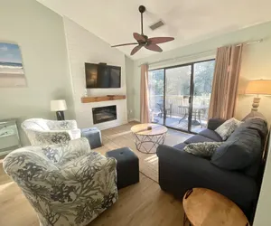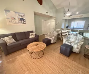 Welcome to your new favorite place to vacation! This wonderfully remodeled 3-bedroom, 3-bath villa is a delight. With its modern beach vibe and updated touches, this villa stands out from the rest. The open living and dining areas are spacious; there is a pullout sofa and two swivel club chairs in the living area, and the dining table seats six (there is also space for four more at the eat-at bar). The kitchen has been upgraded with granite countertops, stainless steel appliances, and sleek black fixtures.