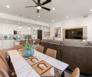 Mane Stay at Terra combines modern design with easy access to Southern Utah’s best amenities. This 3-bedroom, 3-bath condo sleeps up to 8 guests and is ideal for both family trips and group getaways. The king suite, queen room, and queen-over-queen bunk provide space for everyone, with thoughtful extras like a Pack ’n Play for little ones. Whether you’re gaming on the Nintendo Switch, watching movies on Smart TVs, or gathering for board games, this home is built for making memories. With its prime location just off the Hurricane exit, you’re minutes from adventure while enjoying the calm of poolside relaxation. Mane Stay truly gives you the best of both worlds: a cozy home base indoors and resort-style amenities right outside your door.