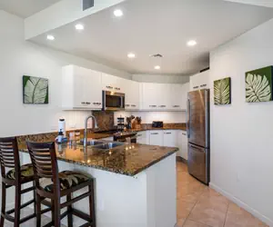 Your 1,778 square-foot townhouse has an open floor plan for bringing the entire ohana together. The living room provides plenty of comfortable furniture. The large kitchen is well stocked with dishes and cookware. Gather out on the large, ground-floor lanai, grill your fresh island catch and enjoy outdoor dining any time of the year. You can always get a peek at the ocean from the ground floor, or head to the upstairs balcony for an amazing ocean sunset view.