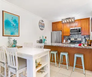 In the morning, grab a quick bite at the breakfast bar before hitting the beach, or linger on the lanai with a fresh cup of Kona coffee. Large sliding doors invite the ocean breeze right into the home, a constant reminder that you really are in Hawaii.