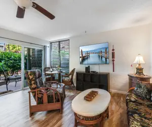 Lush gardens, solar heated pool, BBQ and picnic area, oceanfront seating, ocean access for the expert swimmer and of course those famous Kona Sunsets. This is a non-smoking complex. Free WiFi and digital cable.