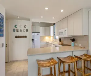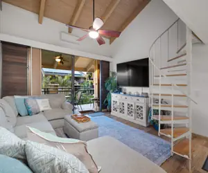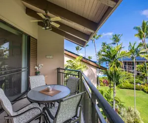 Kona Makai condominiums feature concrete buildings, air-conditioning units in living room and bedrooms, pool, spa, oceanfront sunning deck, fitness room, tennis courts, covered and open parking, BBQ picnic area, and gated complex. Located approximately 1.5 miles from Kailua Pier. Walk, bike or jog along the oceanfront road of Alii Drive.