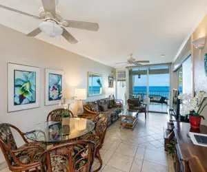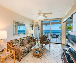 Enjoy stunning ocean views, world-class surf, and unforgettable Kona sunsets—all from the comfort of your private lanai. This well-appointed 2-bedroom, 2-bath oceanfront condo is the perfect home base for your Big Island vacation. The primary bedroom features a king bed and en-suite bathroom, while the guest bedroom offers a queen bed. A queen sofa bed in the living room provides additional sleeping space. The fully equipped kitchen has everything you need to prepare meals at home, and beach gear—including chairs, towels, and a cooler—is provided for your convenience. Additional snorkel and beach equipment is available for rent nearby.
