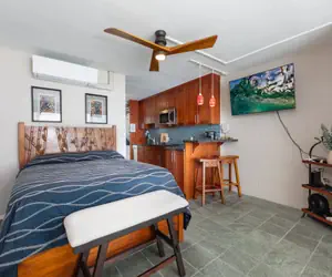 Located right on the water, this adorable oceanfront studio is well equipped and fully furnished with popular Magic Sands Beach on one side and a peaceful park on the other.
