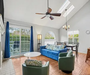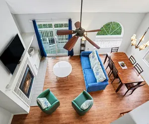 Discover the charm and comfort of 6F Cumberland Terrace, a spacious split-level villa located in the prestigious Property Manager community. This beautifully updated retreat offers ample room for up to eight guests, making it an ideal choice for families or groups seeking a relaxing beach getaway. The main living area features a fully equipped kitchen with quartz countertops and modern appliances, a dining space for six, and a cozy living room with a pullout sofa, smart TV, and decorative fireplace. Step out onto the private balcony to enjoy your morning coffee or evening breeze.