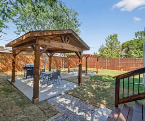 Highlights:3 spacious bedrooms (1 King bed, 1 Queen bed, and 3 Twin beds)2 full bathroomsFully equipped kitchen with stainless steel appliancesPrivate fenced backyard with pergola, fire pit, string lights, covered patio, ceiling fan, and gas BBQ grillFast Wi-Fi and smart TVsWasher and dryer for added convenienceClose to Bishop Arts District and Downtown DallasWhether you’re visiting Dallas for work or leisure, The Sage at Dogwood offers the perfect balance of comfort, style, and location. Inviting you to relax, recharge, and feel right at home.