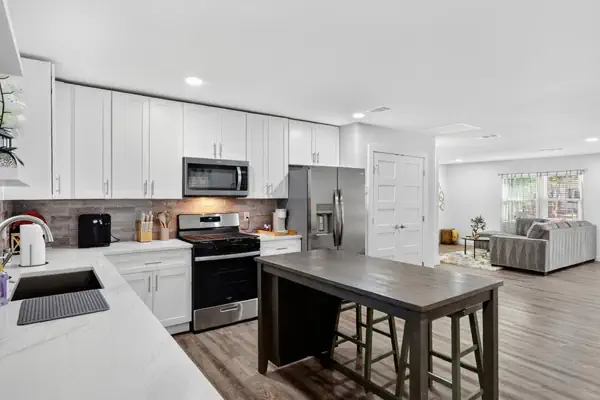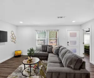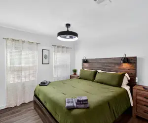 Welcome to The Sage at Dogwood, a serene and stylish retreat nestled in the heart of Oak Cliff. Thoughtfully designed with comfort and sophistication in mind, this modern home is ideal for families, friends, or professionals looking for a relaxing stay in one of Dallas’s most vibrant neighborhoods. Step inside to a bright, open-concept living space where contemporary design meets cozy comfort. The spacious layout features plush seating, abundant natural light, and a large smart TV—perfect for relaxing evenings or gathering together. The fully equipped kitchen includes stainless steel appliances, quartz countertops, and all the essentials for preparing home-cooked meals.