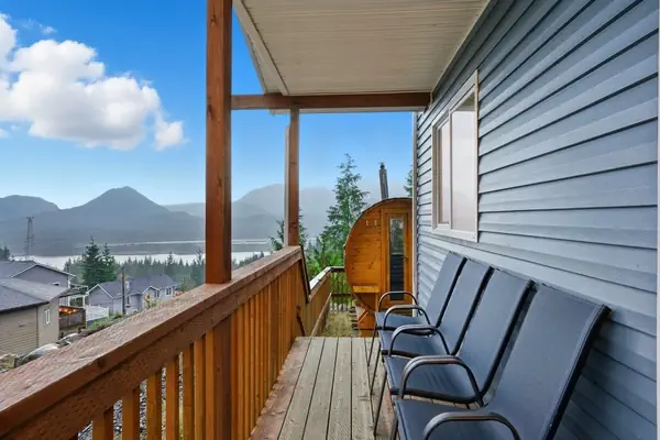Welcome to Jackson Heights Haven: Elevated Alaska Retreat with Stunning Tongass Narrows ViewsPerched 500 feet above sea level on Jackson Heights, our cozy 3-bedroom home offers breathtaking panoramas from the spacious upstairs living room and kitchen: seasonal cruise ships gliding through Tongass Narrows into the Pacific Ocean, float planes landing in the ocean, Alaska flights at Gravina/Ketchikan International Airport, and the lush expanse of Tongass National Forest. Perfect for traveling hospital employees, cruise extensions, fishing excursions, or wilderness escapes—it's your front-row seat to Alaska's Inside Passage magic.Prime Location & Easy WalksConveniently positioned near essentials and attractions: 5-10 min to PeaceHealth Ketchikan Medical Center 5 min to Ketchikan High School 5 min to University of Alaska Southeast 10-15 min to historic Water Street's shops, galleries, and totem poles 30 min stroll to cruise docks and vibrant downtown Ketchikan (or quick drive/taxi)Ideal for families, groups, solo travelers, or medical professionals seeking proximity without the downtown hustle.Upstairs ComfortsUnwind in the open-concept living/dining area with panoramic views. The fully equipped kitchen features a semi-automatic espresso machine, ample cookware, and everything for gourmet meals or quick coffees with an ocean backdrop. Relax on plush seating while watching ships, planes, or forest sunsets.Bedrooms & Baths Master Suite: King bed, en-suite bathroom with whirlpool tub for ultimate relaxation. Half Bath & Laundry: Convenient upstairs powder room and washer/dryer for easy stays. Downstairs Retreat: Two bedrooms with full-size beds, full bath with tub/shower combo, and a fun entertainment room—complete with pull-out sofa bed, large TV, board games, and extra fridge for snacks or drinks. Sleeps 8+ comfortably.Outdoor BlissStep outside to our wood-fired barrel sauna overlooking the ocean and Gravina Island—fire it up for a steamy, scenic soak after hiking or fishing. It's the perfect way to embrace Alaskan traditions with a view!This hidden gem blends modern comforts, epic vistas, and adventure access—book now and discover why guests rave about their Jackson Heights escape. Pets? Inquire. Strict no-smoking. Local TOT applies.